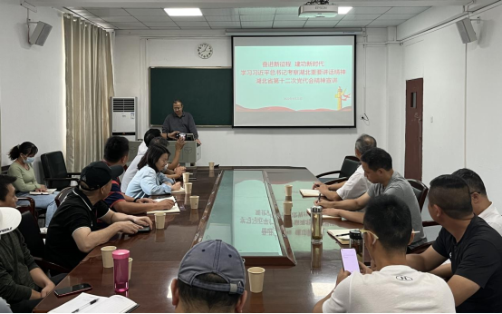 殷云飞首先带领大家回顾了习近平总书记五次考察湖北的经过和所作的重要指示批示精神,解读了其中蕴含的核心要义和精神实质。随后他围绕准确把握过去五年的工作成绩和经验启示,准确把握未来五年湖北工作的总体要求和奋斗目标,准确把握新发展阶段湖北面临的新形势新任务,准确把握贯彻新发展理念的实践要求,准确把握建设全国构建新发展格局先行区的重点任务和路径举措,准确把握坚持和加强党的全面领导、提高建设全国构建新发展格局先行区的能力和水平的重要要求等六个大方面为大家详细全面地解读了省第十二次党代会报告的主要内容。