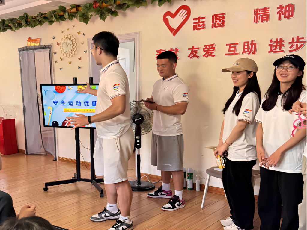 (图为团队成员在活动前为孩子们讲解安全运动相关知识 郭姌琪 摄)