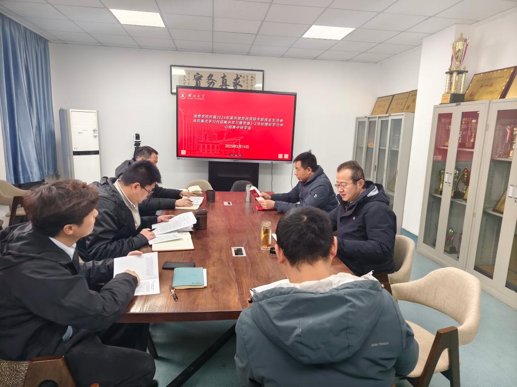 院领导张春合、肖朋、张强弓、史文文和付群分别领学中共中央政治局分析研究2025年经济工作会议、《中国共产党章程》第七章“党的纪律”、习近平总书记在二十届中央纪委四次全会上的重要讲话、第二十八次全国高公司党的建设工作会议精神以及湖北省委十二届八次、九次全会公报等重要内容,并紧密结合思想和工作实际,交流了学习体会。