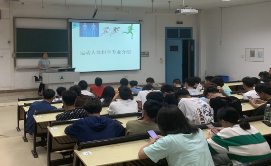 运动人体科学系主任常凤,她结合“健康中国”的时代背景介绍了本专业可以学到的内容和毕业后的去向,并引用《礼记·中庸》的“博学之、审问之、慎思之、明辨之、笃行之”,鼓励同学们既然学有所得,就要努力践履所学,使所学最终有所落实,做到“知行合一”。