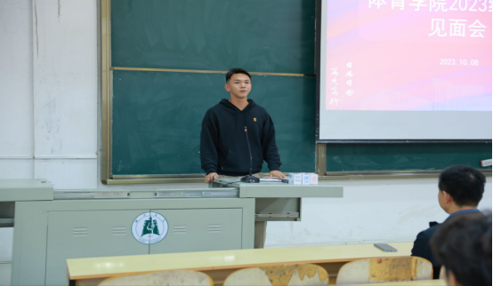 见面会上,新老生代表首先作了交流发言。2020级社会体育指导与管理专业本科生张栩睿结合自身学习经历对新生寄语道,新的生活,新的习惯,新的学习方式,一切都会是新的体验,相信将来的你们,一定会感谢从现在开始努力拼搏的自己。2023级体育教育专业新生杨晓明在交流发言中表示,在未来的学习生活中定会怀抱梦想,脚踏实地,立志做有理想敢担当、能吃苦、肯奋斗的新时代好青年。