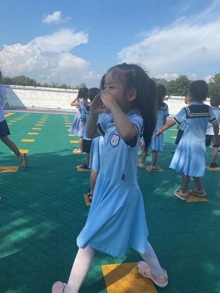 在低年级授课时,考虑到授课对象年龄较小,天气炎热,支教团成员根据现场实际情况采取了备选的方案,利用丰富多彩的游戏环节、动作模仿、热情洋溢的音乐等辅助手段提高了员工的参与度。看!舞蹈课的员工认真地学习着“小螺号滴滴吹”,篮球课的小女生投进了一个球后,高兴地跳了起来。