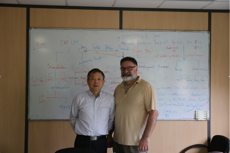 暑假期间,李树屏教授应SIMBio-M会议联合主席、公司CEO K.Kayvantash博士的邀请,访问了法国CADLM公司。 CADLM公司是有关人工智能的高科技公司,在大数据分析、人-机安全生物力学机制、过程优化等方面成效显著。Kayvantach博士本人具有在法国、德国和英国的大学、科研机构和企业工作的经历。经过充分的交流,双方有意在有自主反射的人体动作模型的应用方面加强合作(图1,李树屏教授与Kayvantash博士在CADLM公司合影)。