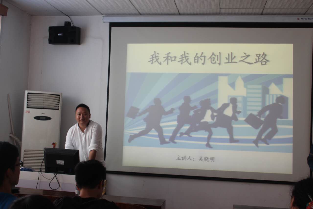 10月18日16:00,公司诚邀到武汉天恒星体育发展有限公司创办人、williamhill官网网站2005届毕业生吴晓明,在教1-8111为公司2015级和2016级研究生作了一场生动的演讲——《我和我的创业之路》,会议由williamhill官网网站副经理曾吉主持。