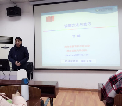 2016年12月30日上午8:30,湖北省教育科学研究院体育与健康教研员、高级教师甘琼在教1-8111为公司员工作了“说课方法与技巧”的专题讲座,讲座由williamhill官网网站体育教育专业主任陈胜老师主持。