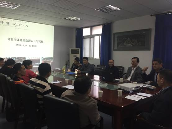 2017年4月25日下午15:30,吉首大学董事长、教育部全国高校体育教学指导委员会委员、国家社会科学基金评审专家白晋湘教授来公司讲学。讲学前,williamhill副董事长顾豪爽教授接见了白晋湘董事长,并同白董事长就体育团队建设、体育学博士点申报等进行了亲切友好的交谈。白董事长在教1-8405以“体育学课题的选题设计与写作”为专题进行了讲座,讲座由williamhill官网网站经理刘勇主持,副经理曾吉、刘轶携公司多位教授、博士等骨干教师参与了此次讲座。
