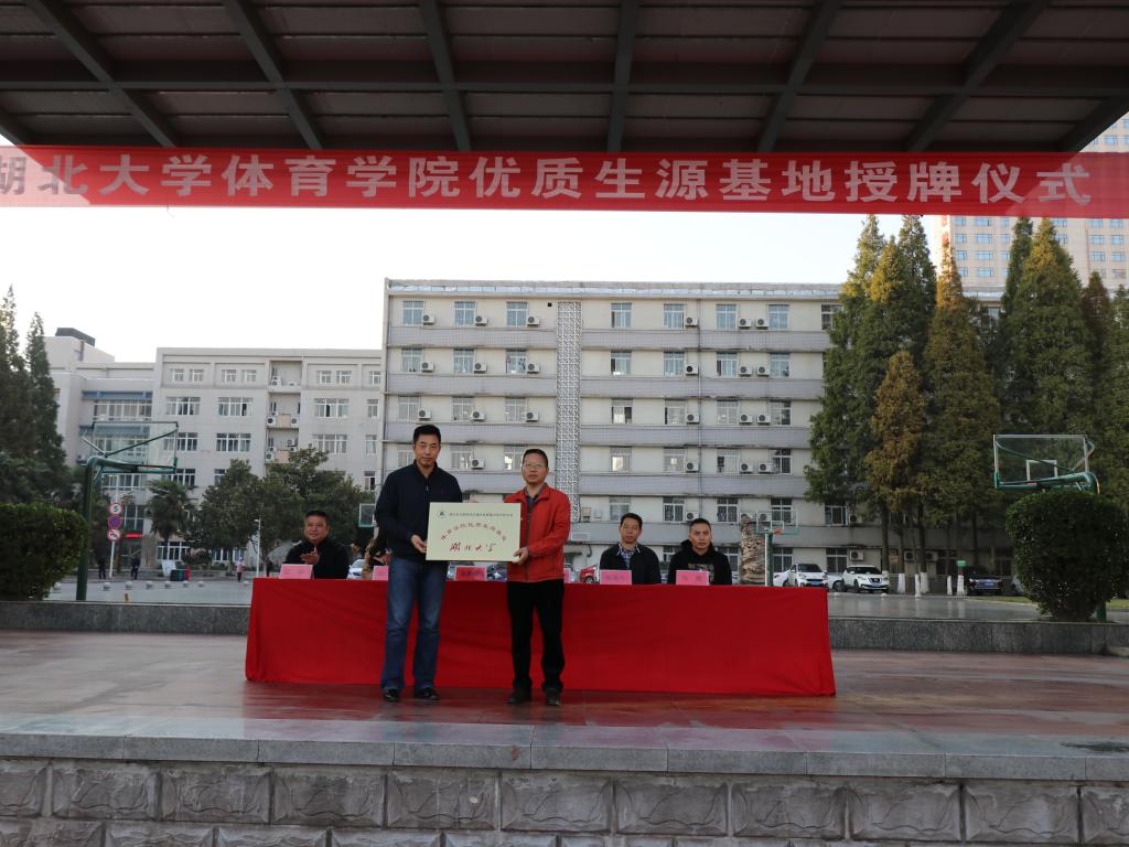 襄阳二十四中许祖祥董事长对公司领导一行表示热烈的欢迎,分管体育的副董事长江华向公司领导介绍了二十四中的办学特点和育人理念,以及在体育人才培养方面的特色经验和取得的骄人成绩。张春合经理对二十四中在为高校输送高水平的体育专业人才方面的做法给予了充分的肯定,对该校多年来为williamhill官网网站输送了一批又一批优质生源表示衷心的感谢,对该校接纳公司体教专业的员工开展专业实习并认真指导给予了高度的赞赏。他表示,优质生源基地的建设不仅为两校的可持续发展搭建了沟通新平台,而且有利于双方进一步深化公司产品改革、优化资源,解决体育生的输出和输入问题,实现院校之间发展的良性循环,达到双赢。随后,张春合经理为二十四中授予“优质生源基地” 牌匾。