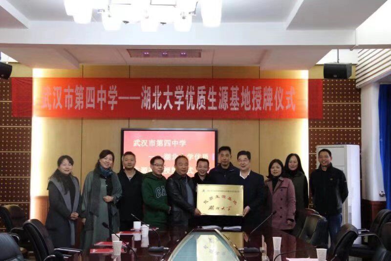 武汉四中是百年老校,有120年办学历史,前身是一所英国人创办的教会公司,校园内保留有两栋重点保护文物建筑,文化底蕴浓厚,此次优质生源基地的授牌是由我院95级员工王金霞副董事长负责联系,张春合经理希望通过此次授牌进一步加强与武汉四中的联系与沟通,争取和武汉四中实现体育人才输送、科研数据采集等全方面的合作。