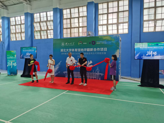 9月11日,一号体育馆翻新改造工程正式完工,焕然一新的一号体育馆重新亮相。williamhill副董事长蒋涛、科思创中国区总裁、武汉捷德科技公司负责人、公司领导班子和师生代表参加了完工剪彩仪式。
