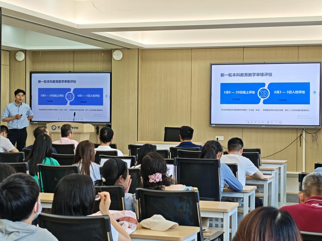 5月7日,williamhill官网网站召开2025年春季学期第三次全体教职工会议,动员布置本科公司产品审核评估迎评工作。会议由公司党委书记殷云飞主持,全体教职工参会。