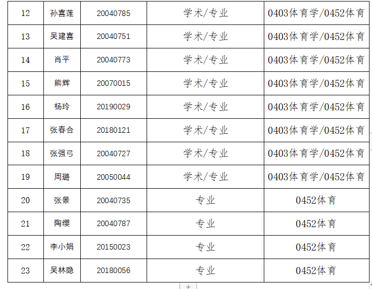 根据《关于印发<williamhill教师申请招收博士研究生审核办法(修订)>等三个文件的通知》(校研字﹝2019﹞8号),经体育公司分学位评定委员会全体委员审议表决,同意陈君霞老师2022年招收学术/专业硕士研究生的申请,认定曾吉等23名教师具备2022年招收学术/专业硕士研究生资格。现将结果公布如下:
