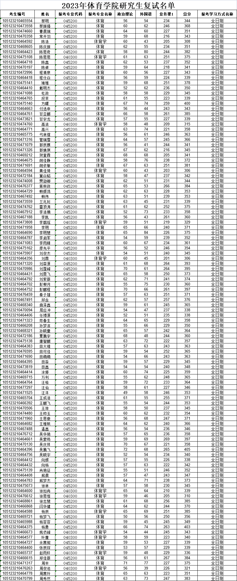 2023年硕士研究生复试成绩